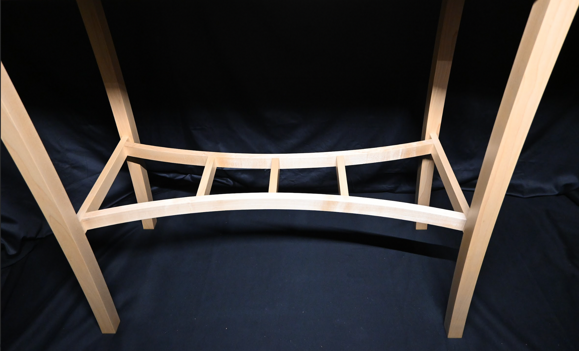 - Curved bent laminated top and bottom rails feature three consecutively laminated strips of American Rock Maple ensuring colour and grain consistency.