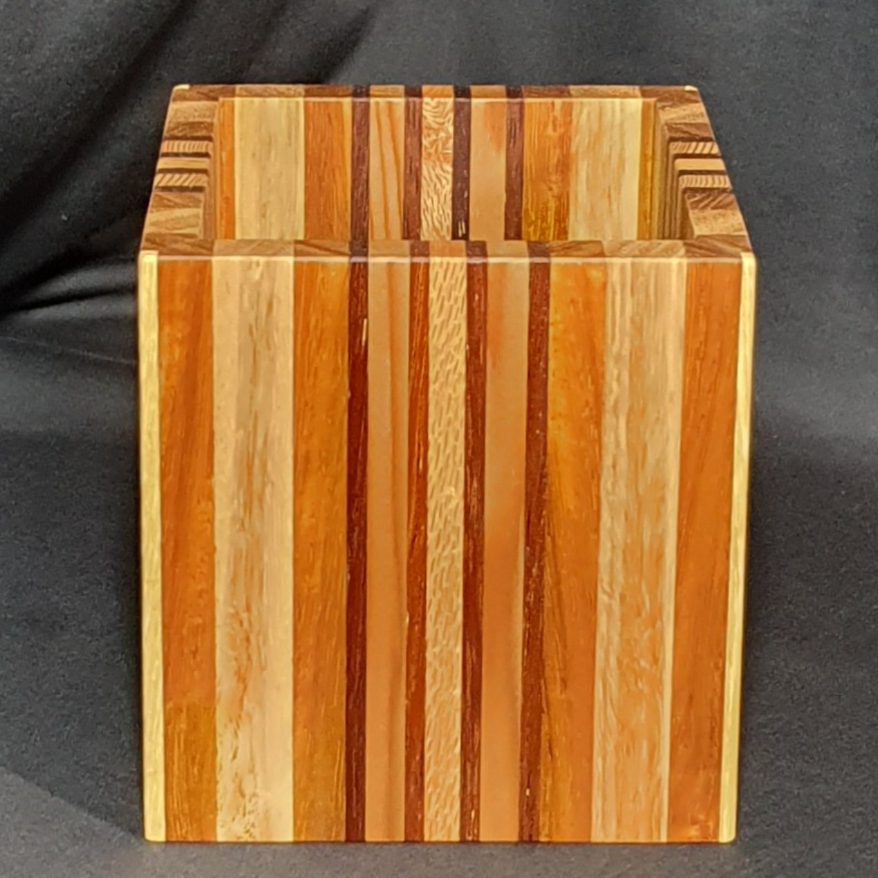 Enhance the organisation of your business or home office with this bespoke stationary organiser. Featuring an array of contrasting coloured timbers and a spacious interior, this organiser elevates your productively whilst adding a touch of sophistication to your environment.
